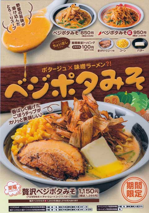 ばり馬ラーメン 2025年11月27日より期間限定【ベジポタみそ】をお楽しみください。